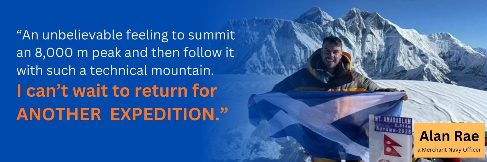 From the Scottish highlands Munros to the towering Himalayas of Nepal, Alan Rae’s journey is a vivid illustration of how preparation meets opportunity. Summiting Manaslu and Ama Dablam in one season is not only a personal milestone — it resonates as a tale of ambition, versatility and respect for the mountains.